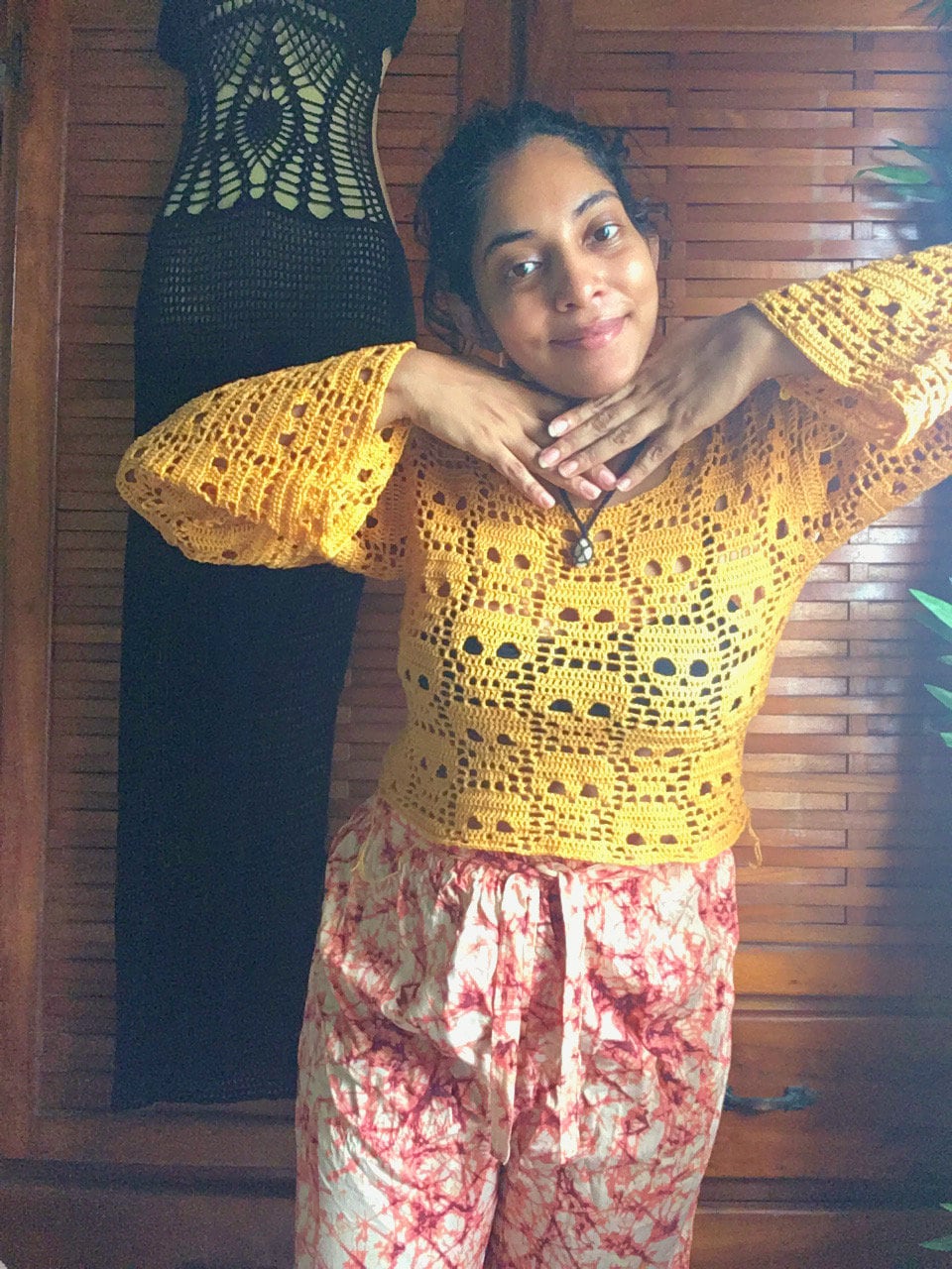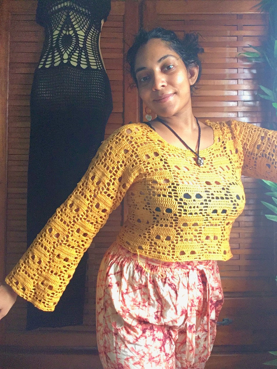 This pattern is versatile. You can make it sleeveless, cropped, with short or long sleeves. You have the option of flared sleeves or cuffed.
